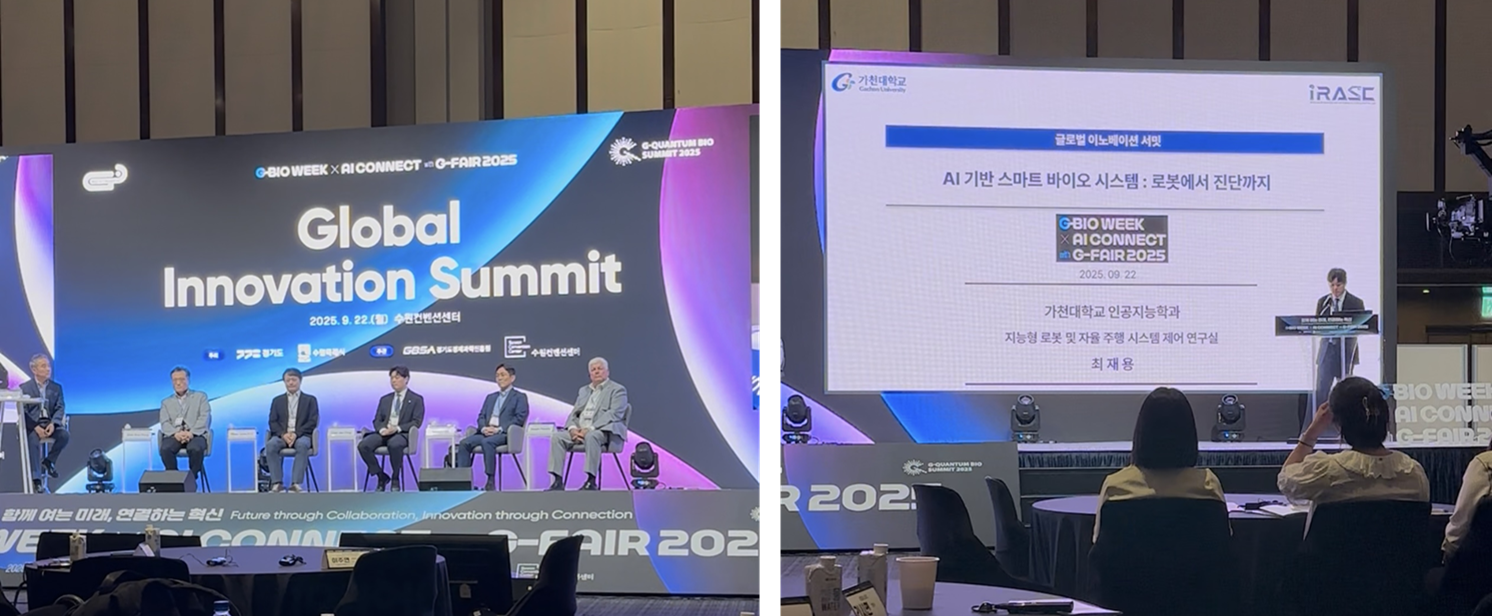 개막행사인 Global Innovation Summit 에서는 “혁신을 이끄는 바이오·AI 기술 융합” 을 주제로 전문가들이 참여한 가운데 심도 있는 논의가 이어졌다. 이 자리에서 가천대학교 인공지능학과 최재용 교수는 “AI 기반 스마트 바이오 시스템: 로봇에서 진단까지” 라는 주제로 발표 및 패널 토론을 진행하였다.